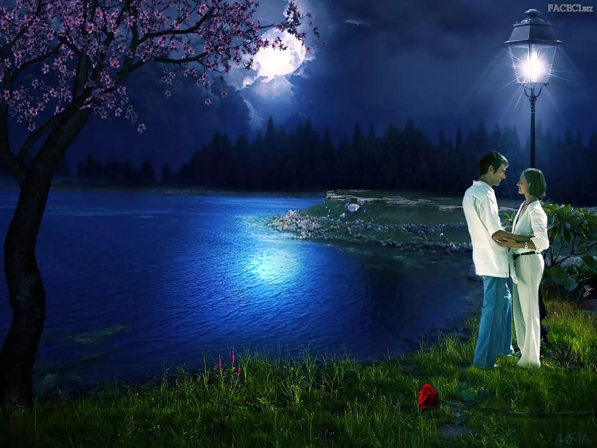 Para, Jezioro, Zakochana, Księżyc - faceci.biz